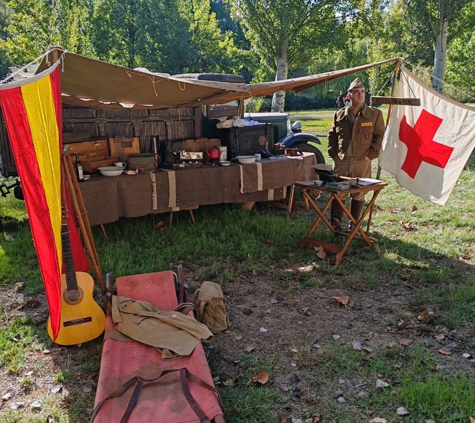 Cuatro grupos de recreación histórica mostraron distintos momentos del pasado, desde la época medieval hasta recreaciones de los dos bandos de la Guerra Civil Española, aportando dinamismo y contexto a las piezas expuestas.