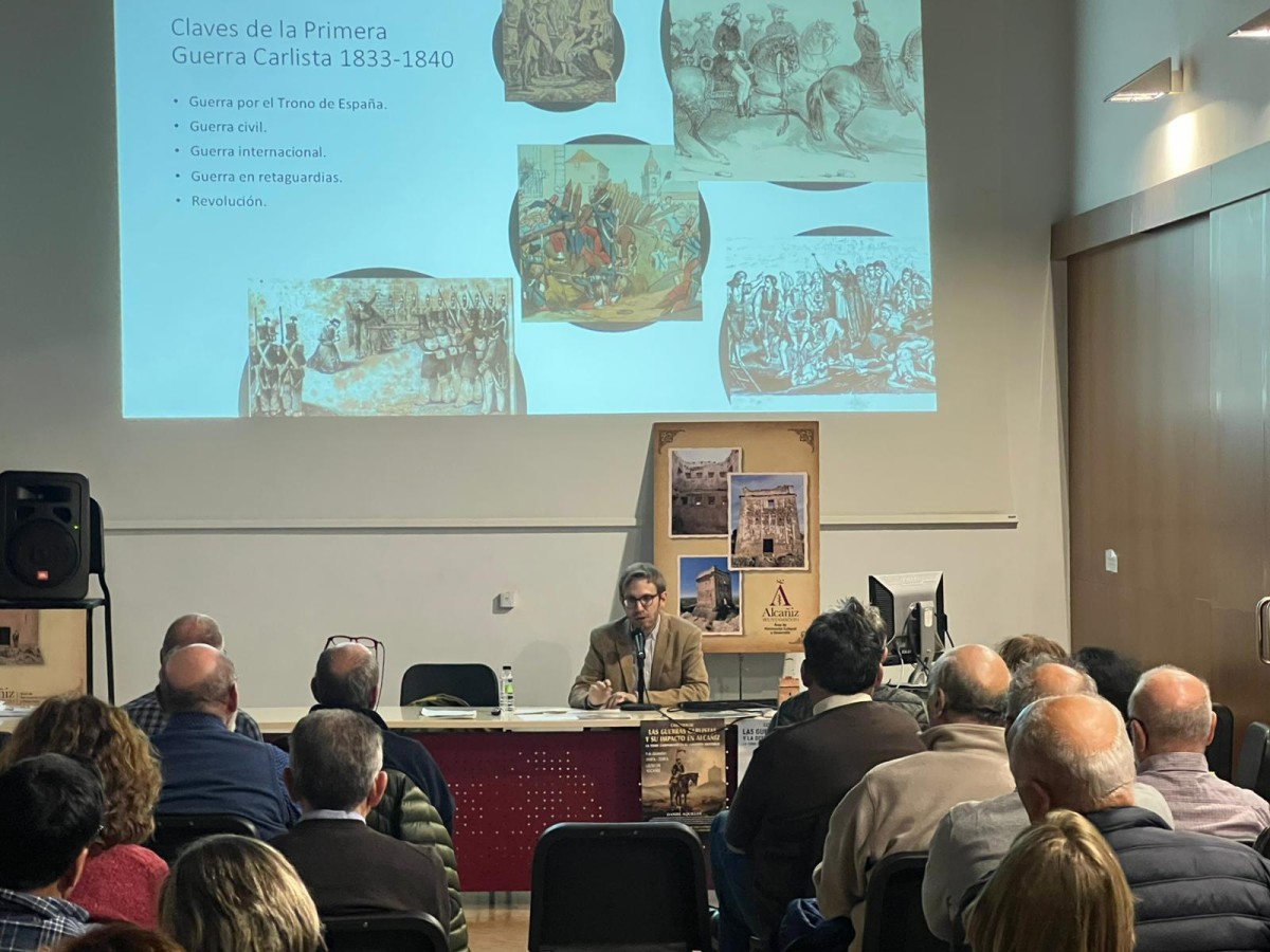 En su ponencia Aquillué recordó que el siglo XIX fue “un periodo convulso en toda Europa, marcado por revoluciones, contrarrevoluciones y guerras derivadas de la construcción del nuevo orden liberal”. En el caso aragonés -y especialmente en el Bajo Aragón- las dos grandes guerras carlistas dejaron un impacto directo en el territorio: asedios, movimientos de tropas y la implantación de una red de torres de vigilancia y comunicación a lo largo del valle del Ebro.
