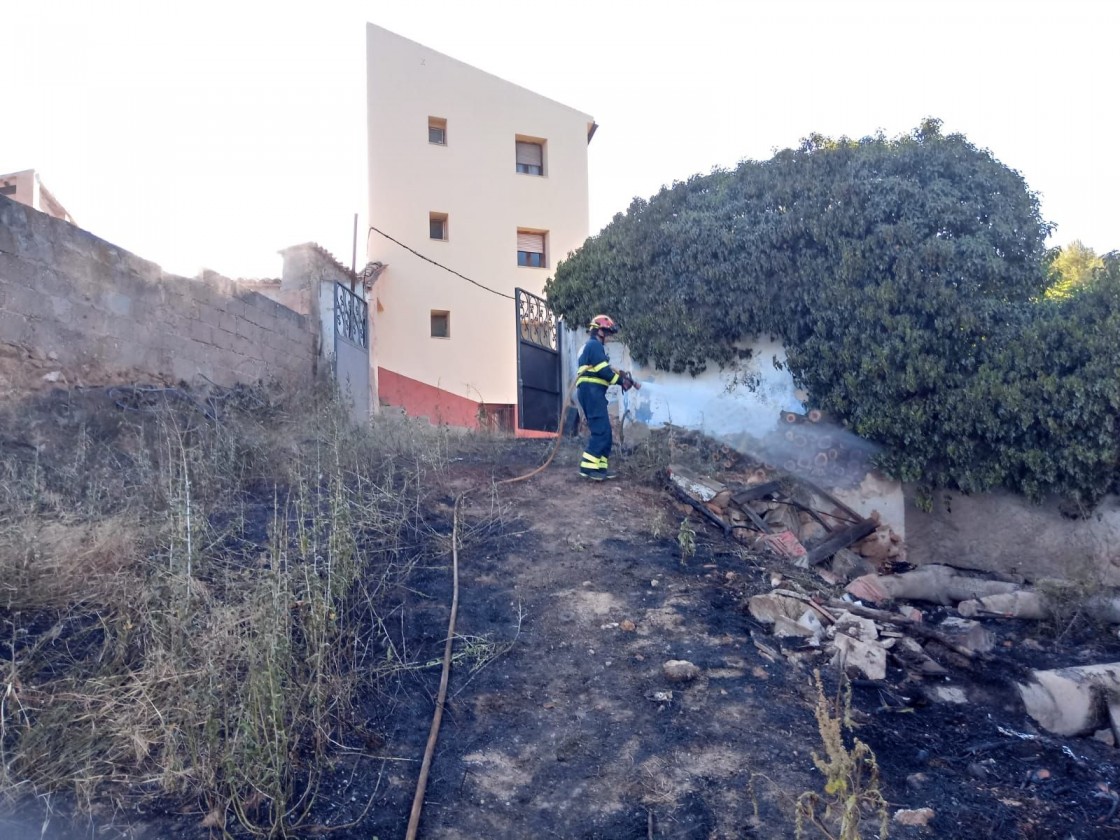 Bomberos de la Diputación de Teruel sofocan un incendio dentro de una parcela de una vivienda de Albalate