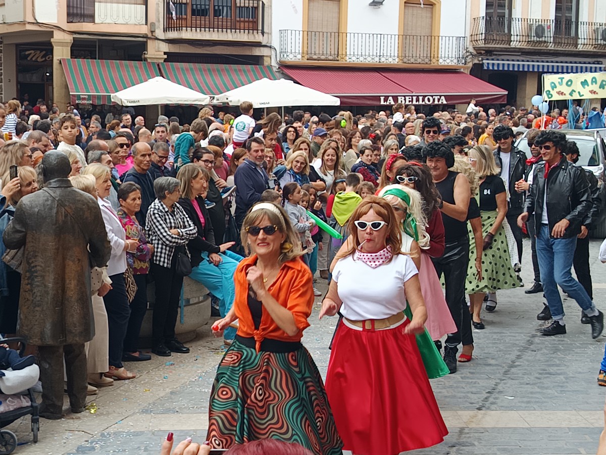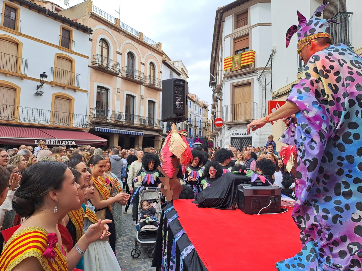 Abrió el pasacalles un grupo de bailongos que añoraban los tiempos en su “segunda casa” durante los años 90, el pub Discoverer, seguidos de un King África que puso patas arriba la plaza con su coreada Bomba. Las reinas y la corporación municipal lo pasaron en grande con esta carroza, una de las más marchosas. Luego hubo una sesión de aerobic con calentadores ochenteros y un mercadillo calé con un curioso erotismo. Los Puchainas se vistieron de aguacates y tras ellos pasaron un popurrí de exploradores y dinosaurios.
