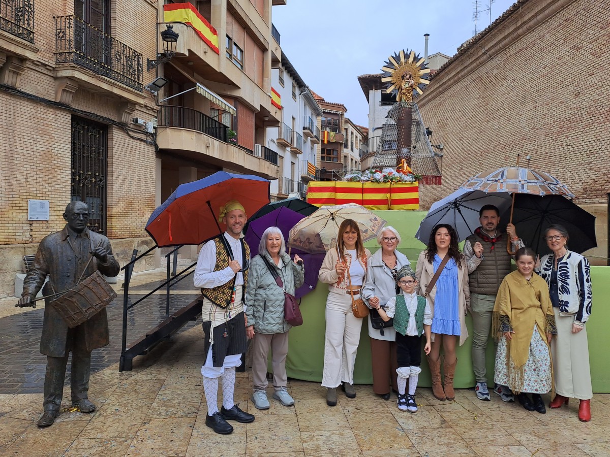 La familia Alfranca depositó, como siempre, su bandeja de claveles formando la bandera de España a los pies de una imagen de la virgen que hay subiendo a la iglesia del Pilar. Unas renovadas piedras que, sufragadas por el ayuntamiento, un grupo de personas ha mejorado recientemente. “Ponemos siempre la bandeja y esta vez con esta novedad. Llevaba hecho como 15 o 20 años con un taller de empleo y las hemos recolocado. Esperemos que dure”, deseó Carmen Alfranca.