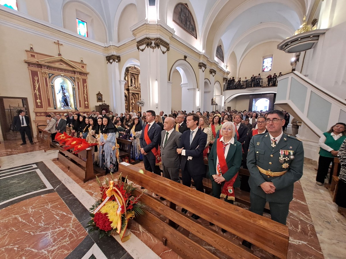 La corporación municipal calandina, las reinas de las fiestas y la Guardia Civil rindieron honores a la Virgen del Pilar en su templo. M. N.