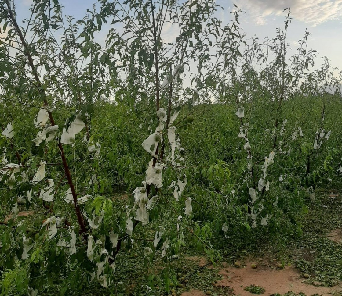 Cosecha de melocotón afectada por una tormenta con pedrisco este verano en el Bajo Aragón