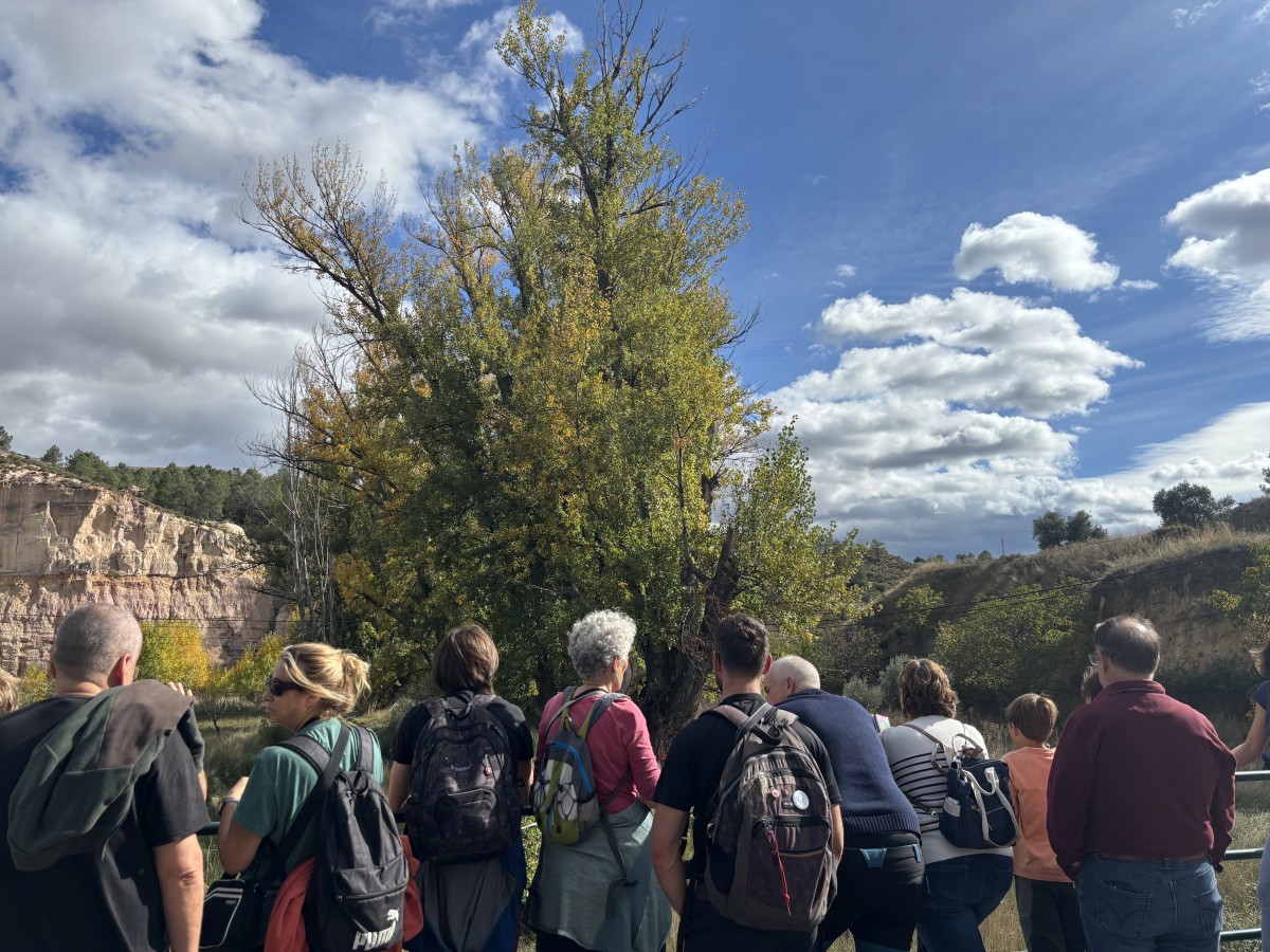 La jornada comenzó a las 9:40 horas en la plaza del Ayuntamiento, con la recepción de los participantes, que iniciaron a continuación una excursión guiada por la ribera del río Estercuel, siguiendo el sendero PR-TE 93. Durante el recorrido, los asistentes pudieron contemplar más de un centenar de chopos cabeceros en excelente estado de conservación y conocer distintos aspectos del paisaje cultural que rodea estas arboledas. La caminata incluyó una parada en el Caseto del Plano, donde se visitaron las catarras, un singular sistema hidráulico tradicional del municipio. A media mañana, tuvo lugar uno de los momentos más esperados: la demostración de escamonda, realizada por el motosierrista Herminio Santafé, quien mostró con destreza la técnica ancestral que da al chopo su característico porte. La actividad permitió comprender de cerca cómo estas prácticas han contribuido durante generaciones a mantener viva esta especie tan emblemática. Tras la escamonda, los asistentes visitaron el Centro de Interpretación del Fuego y de la Fiesta y el Museo del Aceite, donde se presentó la exposición temporal “El Chopo Cabecero, un patrimonio para el desarrollo rural”. Además, se celebró el fallo del X Concurso de Fotografía sobre el Chopo Cabecero, que premió las mejores imágenes relacionadas con este patrimonio natural y cultural. La comida popular, organizada en el pabellón municipal, reunió a numerosos participantes inscritos previamente, mientras que por la tarde la plaza de la Fuente acogió el concierto del grupo Deluxe Rock Band, que puso el broche musical a una jornada marcada por la convivencia y el amor por la naturaleza.