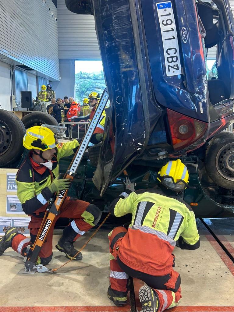 Según explicó Óscar Arrufat, jefe de intervención del Servicio de Bomberos de la Diputación de Teruel, “son tres días muy intensos, con talleres que se preparan desde primera hora para que todo esté en su sitio, y con ponencias que aportan un enfoque distinto a la intervención tradicional”. Durante esta segunda jornada, los grupos rotaron por varios escenarios realistas: un vuelco lateral, una colisión entre dos turismos y un rescate en altura, además de un taller teórico sobre planes de actuación y valoración de víctimas. “Intentamos reproducir situaciones que realmente nos encontramos en la carretera, y en algunos casos incluso las que han aparecido a raíz de las danas, con vehículos volcados o empotrados. Son escenarios que nos obligan a repensar cada paso del operativo”, añadió Arrufat.