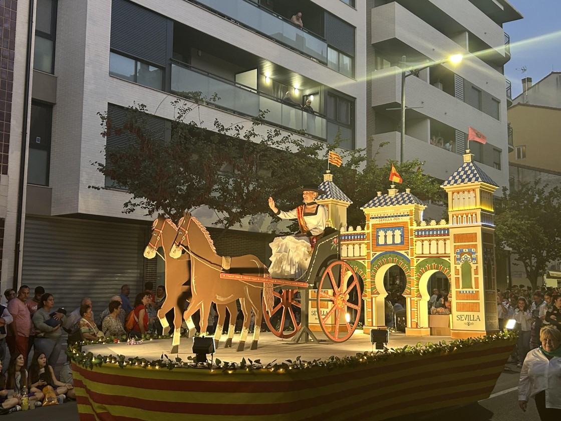 El desfile lo encabezó la Asociación Unión Musical Lira Alcañizana que marcaba el ritmo de todo lo que se venía encima, precedida de la primera carroza: la de la Asociación Aragonesa El Cachirulo, con la Virgen del Pilar como icono central. Después, llegó la Peña Taurina Alcañizana trasladando a todos los presentes hasta Andalucía con su carroza sevillana. Tras estas, fueron muchas las que se decantaron por un estilo más deportivo como Alcañiz Club de Fútbol, Alcañiz C. Patin Hockey, el Club de Balonmano Alcañiz o el Club Voleibol Alcañiz. Aunque otras carrozas hechas por las peñas, decidieron abrir fronteras y llegar hasta los Juegos Olímpicos de París 2024, donde sus participantes se disfrazaron de equipos deportivos.