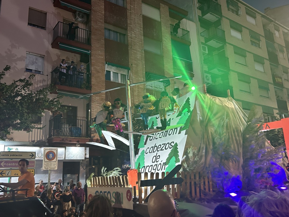 Hasta 20 carrozas hechas por diferentes peñas y asociaciones dieron paso a la noche con sus temáticas, colores y música que animaron a todos los presentes. La avenida abarrotada de público, bailaba al ritmo de las batukadas con los grupos Alcabatuk, Battuxanga y las charangas A Todo Ritmo y Toca Notas.