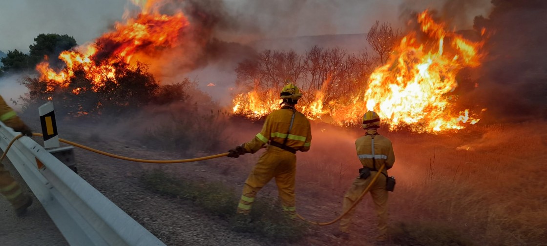 Fuentes conocedoras de los hechos informaron de que el fuego se declaró en torno a las seis de la tarde en la margen derecho de la carretera y a última hora de la noche terminaron las tareas de extinción.También fue necesaria la intervención de efectivos de la Guardia Civil, que se vieron obligados en algún momento de la tarde a cortar el tráfico en la carretera debido a que las llamas habían llegado hasta allí.