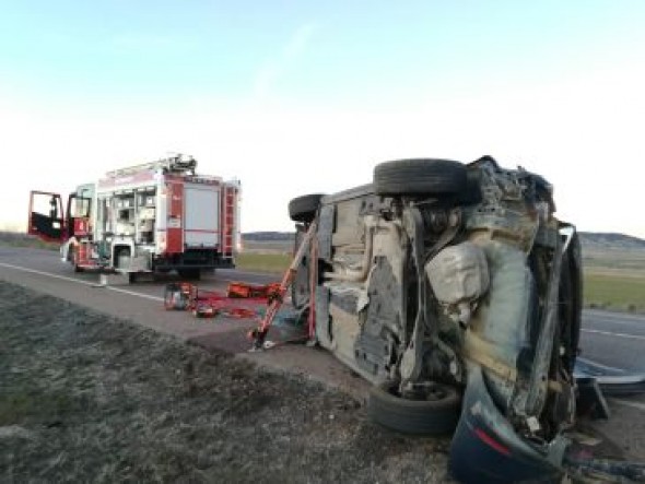 Bomberos de la Diputación del Parque de Alcañiz han excarcelado este viernes al conductorde un vehículo que ha quedado atrapado tras sufrir su coche un vuelco lateral. El accidente ha ocurrido en la A-231 a un kilómetro y medio aproximadamente de Valderrobres. Los bomberos del Parque de Alcañiz han recibido el aviso a las 15:25 y hasta el lugar...