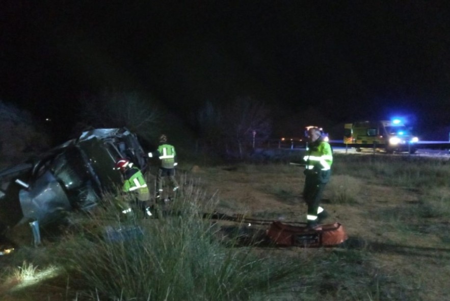 Bomberos de la Diputación de Teruel han excarcelado este sábado de madrugada a una hombre herido que había quedado atrapada en el vehículo que conducía, después de volcar. Fuentes de la Diputación de Teruel han informado de que el accidente se ha producido en la A-1406 y hasta el lugar se han desplazado un oficial y tres bomberos,...
