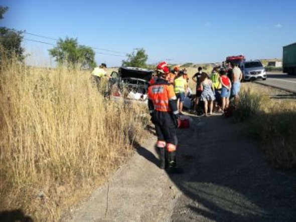 Bomberos de La Diputación de Teruel han atendido este jueves a una persona que se encontraba atrapada en su vehículo después de sufrir un accidente en la nacional 232 a la altura de Azaila. El servicio ha recibido el aviso en torno a las 13 horas y hasta el lugar del accidente se han desplazado un Subjefe un oficial y tres bomberos. Cuando han llegado ha comprobado que se...