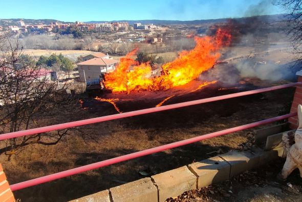 Bomberos de la Diputación de Teruel intervienen para cortar el derrame de betún