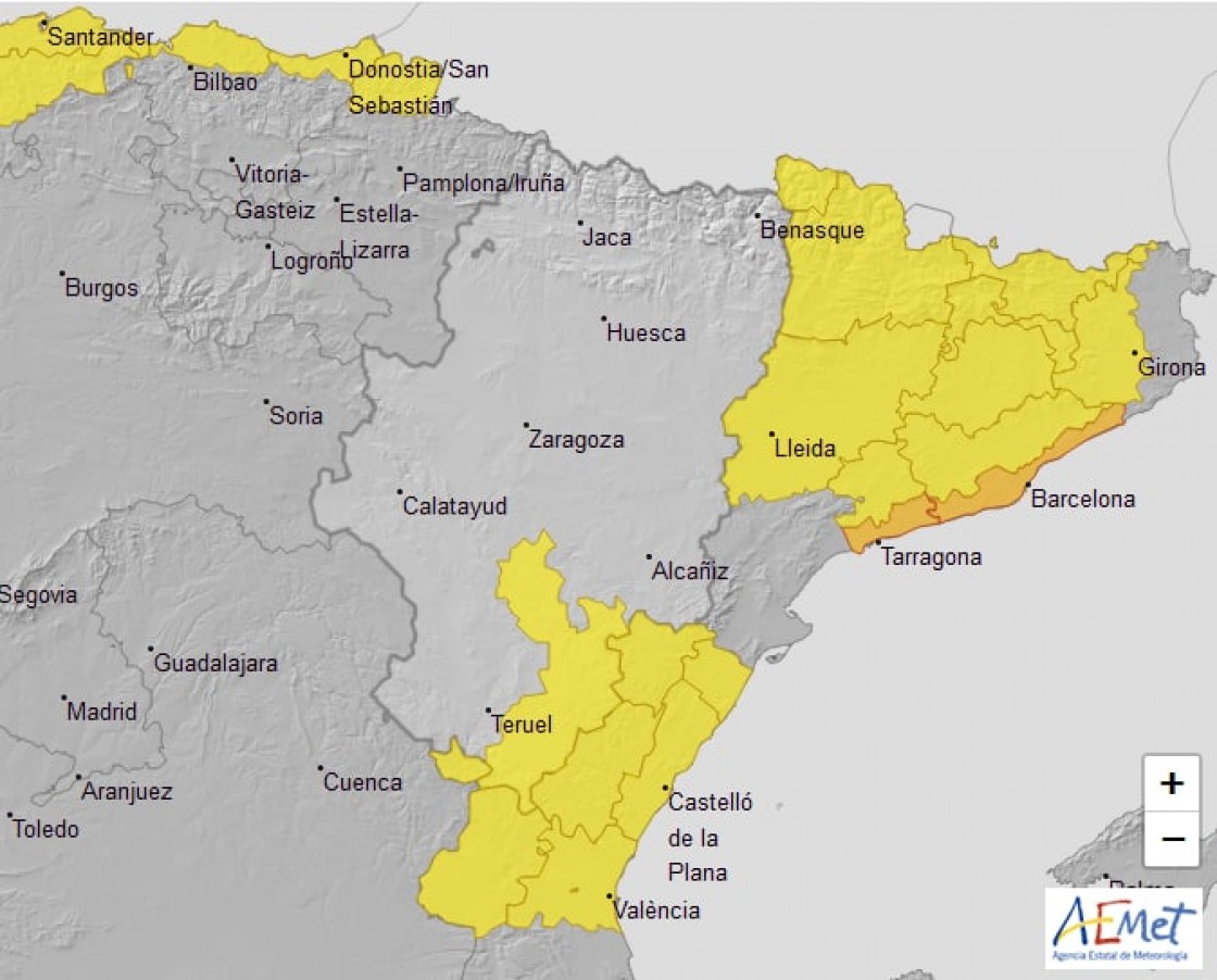 La Dirección General de Interior y Protección Civil informa de que la Agencia Estatal de Meteorología (AEMET) ha emitido aviso nivel amarillo por lluvias y por tormentas en Gúdar y Maestrazgo para mañana, día 17 de agosto, entre las 14:00 h. y las 22:00 h.