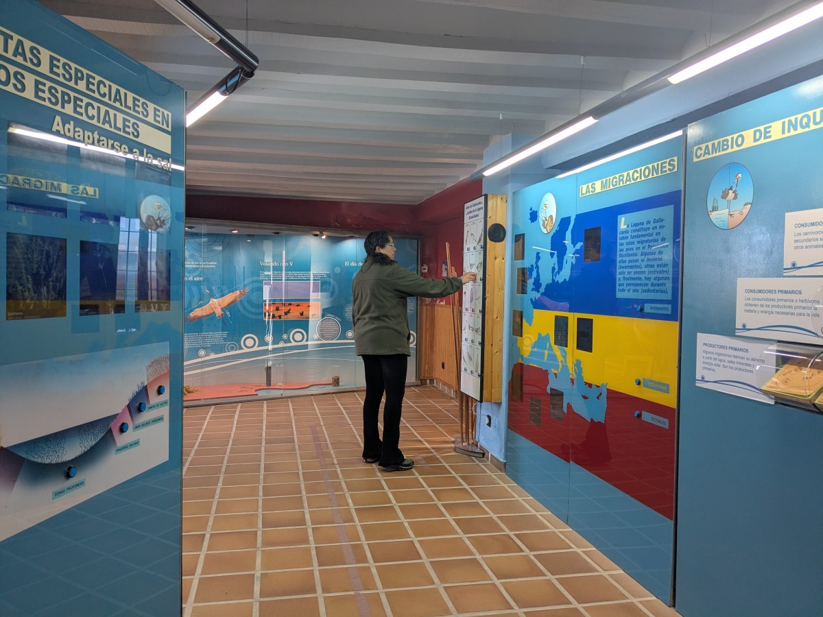 Gallocanta es una laguna con agua salada y precisamente ese es uno de los datos que más llama la atención de los visitantes, que acuden con la idea de que las grullas hacen su parada en el Jiloca por la posibilidad de contar con comida y agua para beber. Durante su visita descubren que lo que les proporciona el vaso es seguridad a la hora de dormir, ya que pernoctan en su interior y así escuchan el chapoteo de cualquier mamífero que se introduce en el agua para atacarlas. “¿Pero duermen con los pies mojados?”, es una de las preguntas que más formulan los visitantes, según apunta María Berna, que es la educadora ambiental e informadora del espacio museístico.