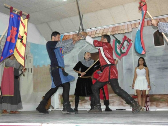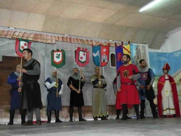 Acompañados por el grupo de música tradicional turolense Esfuriatronadas, los caballeros del siglo XI recorrieron las calles del municipio hasta el pabellón de las escuelas donde a las 12.00 horas comenzó la obra, tras unas palabras de José Vicente Fuente que destacó la relevancia del premio recibido y los elogios que están recibiendo de expertos en la figura de Rodrigo Díaz de Vivar como el catedrático de la Universidad de Zaragoza Alberto Montaner.