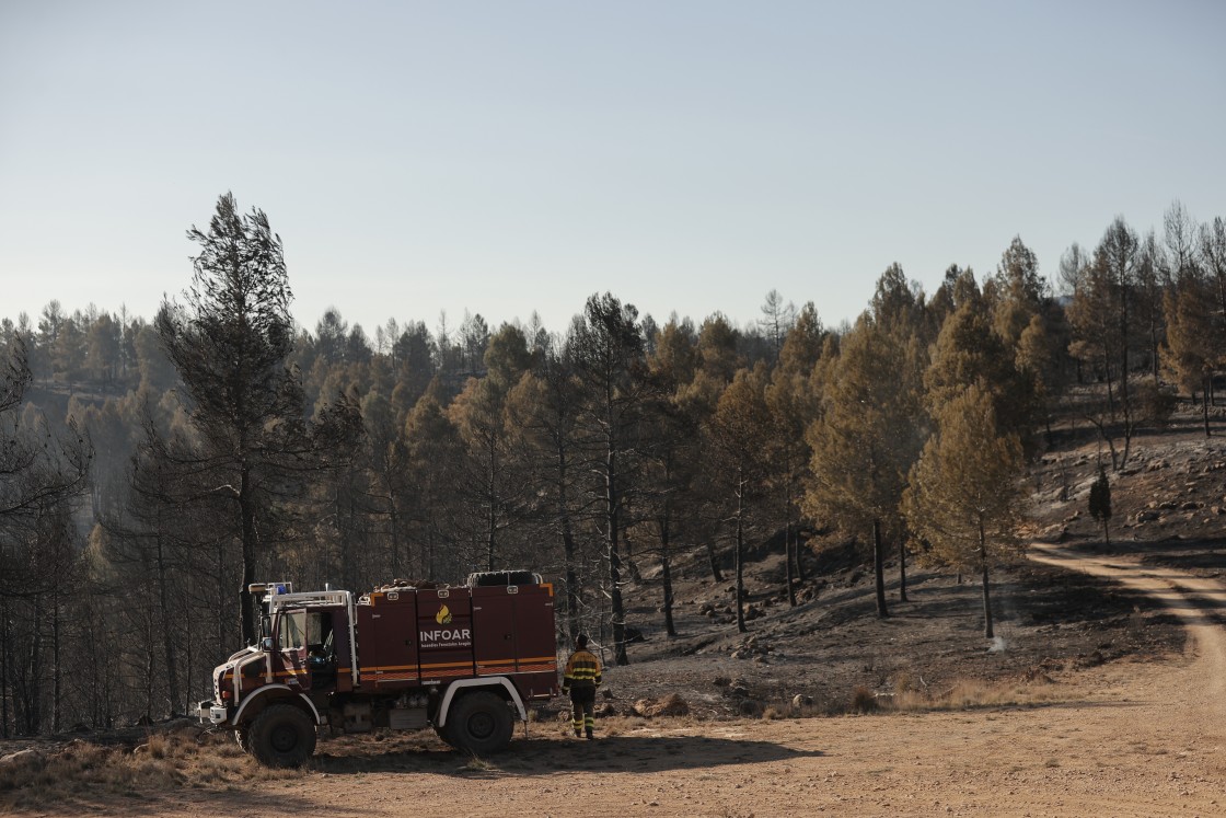 Rando ha destacado la labor de los bomberos de la Diputación de Teruel en el operativo, que durante el día de hoy están desplegados con un equipo de nueve personas, 8 bomberos y 1 subjefe de intervención, después de que la dirección de extinción haya solicitado esta mañana un refuerzo con un equipo más.