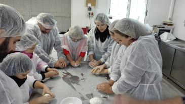 Después de media hora de proceso para solidificar la leche, los asistentes comenzaron a cortar la cuajada con varillas de forma manual y, una vez extraído el suero, la pasaron a los moldes donde cada uno de los participantes y con sus propias manos prensó durante un buen rato el queso que, al acabar la mañana, se llevaron a su casa.