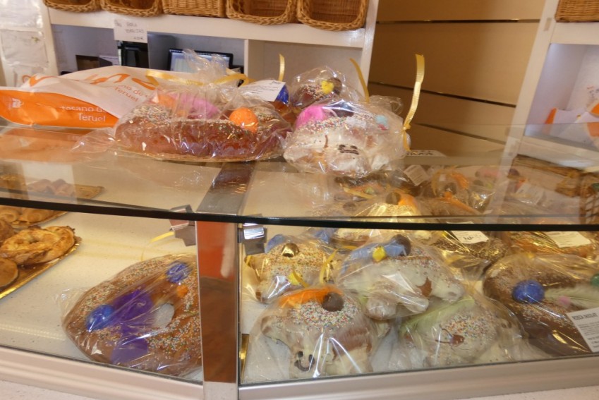 “Llevamos viendo 20 años y siempre cogemos la misma mesa”, dijo Montse Endolz. Este grupo de matrimonios, 14 entre hombres y mujeres, se repartieron el trabajo, “los chicos han venido a almorzar y a coger el sitio, a las 8:30 horas, y nosotras nos hemos quedado haciendo las tortillas para la tarde”, puntualizó Begoña Bonilla. El grupo está cohesionado desde su juventud: “Estábamos todos solteros y ya veníamos”, explicó Enrique Marín. En su menú no faltaba de nada: paella de pollo, conejo y costilla, pero para el aperitivo tampoco, encurtidos, frutos secos y las sobras del almuerzo. Pero también otros ingredientes típicos de este día, la Rosca (masa de harina, huevo y levadura de panadería, azúcar, aceite y huevo duro). En total 12 horas de trabajo. “Desde ayer (por el lunes) por la tarde”, exclamó Begoña Bonilla.