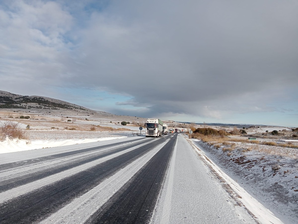 En la A-23 hubo embolsamiento de camiones durante algunas horas y en varias vías de las zonas altas había nivel rojo (A-226 entre Cantavieja y Villarroya) y amarillo de circulación.