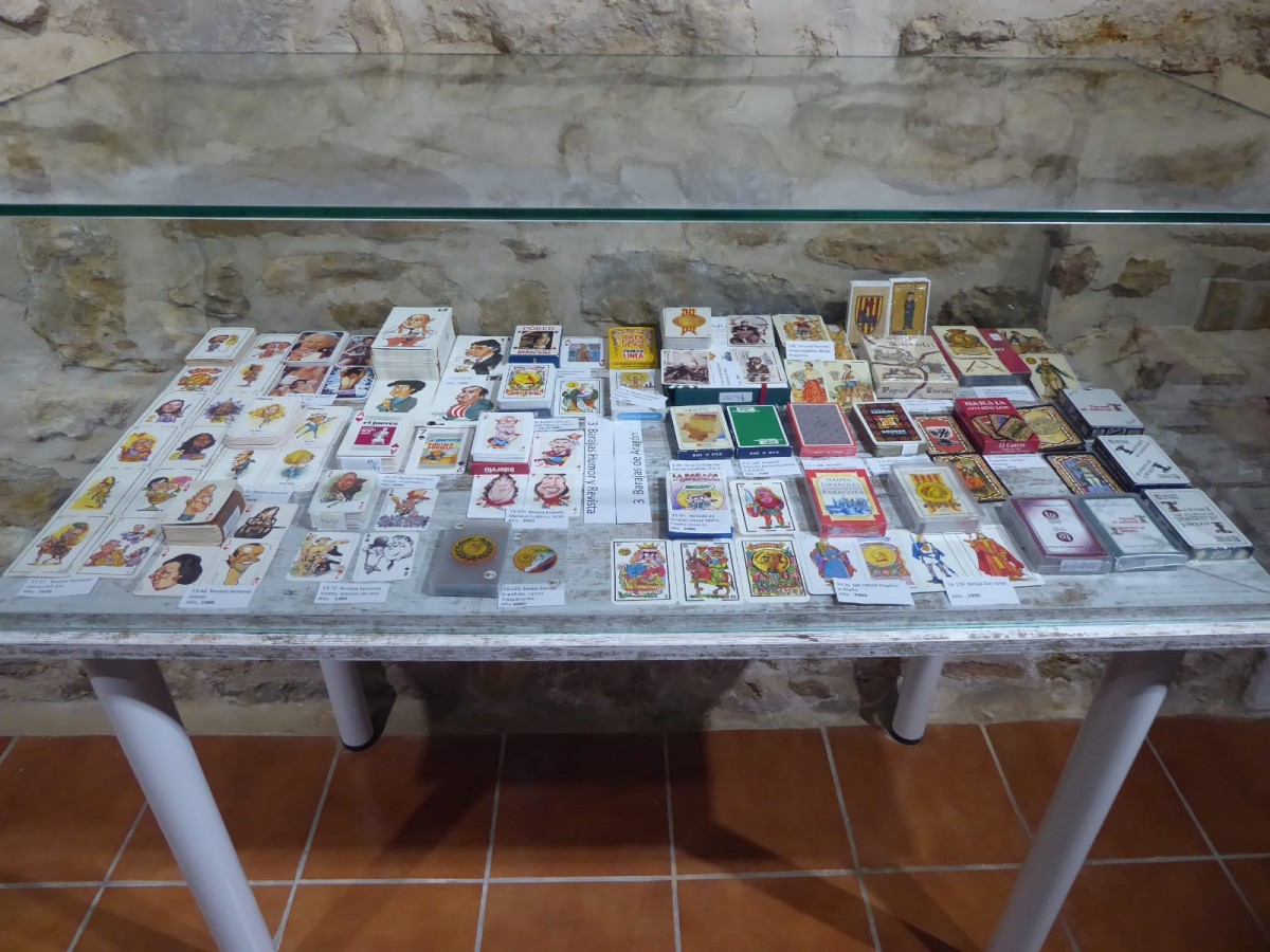 El convento acoge buena parte de las piezas recopiladas por el coleccionista José Miguel MarínLa primera baraja que se conserva está fechada en 1390, se localizó en Sevilla y ya presenta los cuatro palos que han llegado a nuestros días: oros, copas, espadas y bastos. Aunque Heraclio Fournier es el fabricante más famoso y sus naipes y los de sus descendientes se venden en numerosos países del mundo, a lo largo de la historia ha habido otros muchos fabricantes, como la familia Comas, que todavía sigue produciendo hoy (al igual que nuevas generaciones de la familia Fournier) y cuenta entre sus trabajos con algunos diseños únicos, como la baraja dibujada por Salvador Dalí o el centenar de cartas que ideó Ortuño y plasman la imagen de los políticos más conocidos a nivel mundial. Algunos de los naipes más emblemáticos de los que se han fabricado en España se puede ver ahora en el convento de Mirambel, en una exposición que muestra algunas de las piezas más relevantes de la recopilación particular del coleccionista de la localidad José Miguel Marín.
