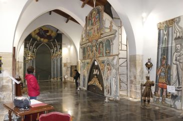 Los grandes murales con pinturas y objetos de la Semana Santa estaban ocultos en una capillaMonreal del Campo ha recuperado en una exposición el Monumento que se puede ver en la ermita de San Juan de la localidad hasta finales del presente mes de abril. Los grandes murales con pinturas posiblemente de finales del siglo XIX y objetos religiosos de la Semana Santa permanecían ocultos en una capilla de la parroquia de Monreal del Campo desde 1959. La labor de la Cofradía de la Sangre de Cristo con la Parroquia y el apoyo del Ayuntamiento ha permitido que se recupere el Monumento que se perdió con la última representación del Descendimiento hace 60 años.