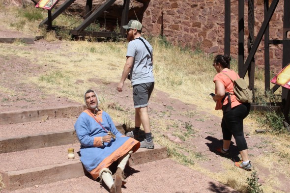 Héctor, en su personaje de Pero, durmió en el castillo y aseguró que había sido una “noche mágica al calor de los compañeros bajo las estrellas”. No lo hacen al raso, sino en los habitáculos con que cuenta la fortaleza y en los pabellones medievales (tiendas) que instalan y que recrean con suma fidelidad de acuerdo con la documentación histórica que manejan. “Este es un castillo monumental y vivir aquí como lo hacemos estos días es sentir lo que sentirían ellos, aunque entender cómo pensaban es complicado porque la mentalidad de la época era distinta”, aclara.