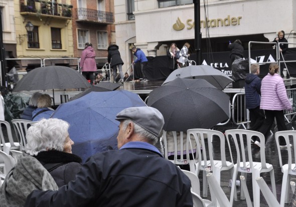 A las 18.20 horas parecía un error. Habían salido los dos primeros grupos en participar, Ritmo Latino y Danza Oriental Etnia, y apenas habían terminado sus números cuando comenzó a llover. Durante cuarenta largos minutos se mantuvo el suspense, con la mayor parte de los bailarines -muchos de ellos niños y adolescentes- resguardados bajo los soportales de la plaza y solo una pequeña e irredenta parte del público sentado en sus sillas, protegiéndose con sus paraguas.