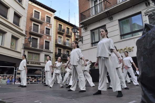 Las precipitaciones a primera hora de la tarde no arruinaron el Día Internacional de la DanzaLa inestabilidad atmosférica estuvo a punto de echar por tierra por segundo año consecutivo la celebración del Día Internacional de la Danza en Teruel, que finalmente pudo celebrarse aunque con cierto retraso, con algunas modificaciones sobre el programa previsto y después de secar cuidadosamente el escenario para evitar caídas y lesiones. Pese a todo, pese a la lluvia que cayó de forma intermitente entre las 18.20 y las 19 horas, gracias a la determinación de los bailarines que no querían dejar pasar su día y de los organizadores, ayer se bailó después de todo.