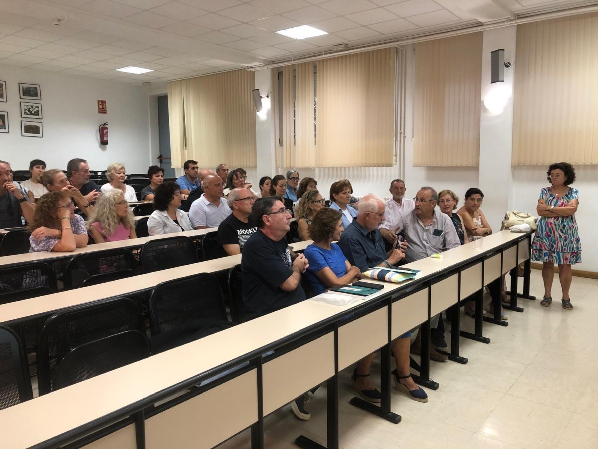 ¿Por qué la presentación de Xiloca en el salón de actos del IES Valle del Jiloca? Muy sencillo, porque entre los artículos de la revista se incluía una concienzuda crónica de este Instituto de Educación Secundaria desde 1990 hasta 2025, realizada tras su reciente jubilación por Patrocinio García Muñoz, antigua alumna del centro y luego profesora de Inglés del mismo. A lo largo de su investigación, que divide en siete etapas, describe y analiza desde una perspectiva personal y apasionada lo que fueron esos 35 años de vida académica. Desfilan por la crónica directores, profesores, personal no docente, alumnos … con los problemas que se iban planteando en cada momento y las soluciones que, a menudo sobre la marcha, debían ofrecer pensando siempre en el beneficio del alumno.