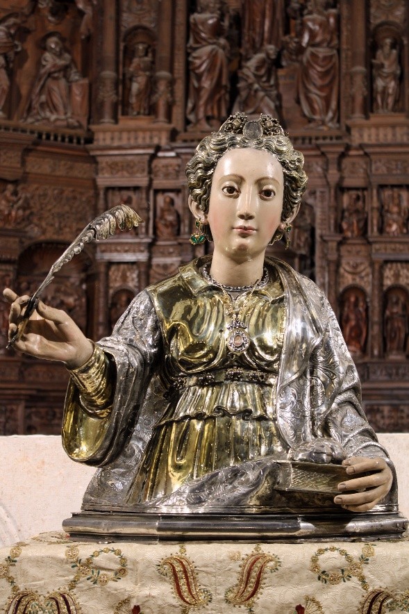 La vida de Santa Emerenciana transcrurrió en Roma durante el siglo III, cuando Teruel no se había fundado. La única vinculación de la mártir con la localidad era la posesión de un fragmento de su cabeza que, según la tradición, fue donado por Juan Fernández de Heredia en 1361 a la iglesia de Santa María de Mediavilla. Entonces, ¿por qué elegir a una santa prácticamente ajena como patrona de la ciudad?