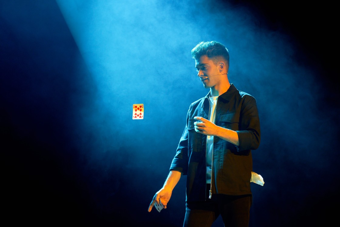 Ya por la tarde, a las 19.30h, será el turno del mago Rubén Díaz que presenta Magia de salón. El joven ilusionista transportará al público a un mundo de asombro con su magia moderna y visual. Su show, lleno de efectos imposibles y originales, está acompañado de un humor elegante y un ritmo trepidante que mantendrá a los asistentes al borde de sus asientos. Con una puesta en escena cuidada y una gran interacción con el público, Rubén Díaz demostrará por qué es uno de los magos más prometedores del panorama actual.