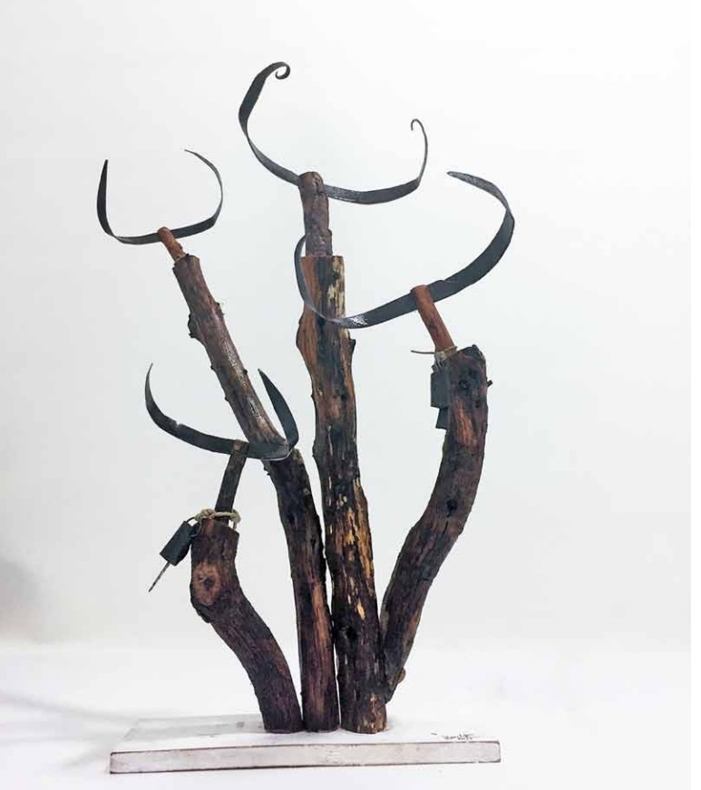 En Los Alfares puede verse una mezcla de todas las series, aunque no se exponen todas las piezas que existen, sino una veintena. “Estudié el espacio cuidadosamente y seleccioné las obras para exponer en función de eso, llevando las que cabían y las que mejor se adaptaban a él”, explica Iranzo, para quien la recientemente inaugurada sala de exposiciones “es un lugar magnífico, muy sugerente, que además es muy apropiado con la estética que a mi me gusta, de madera vieja, hierro y materiales reciclados”.