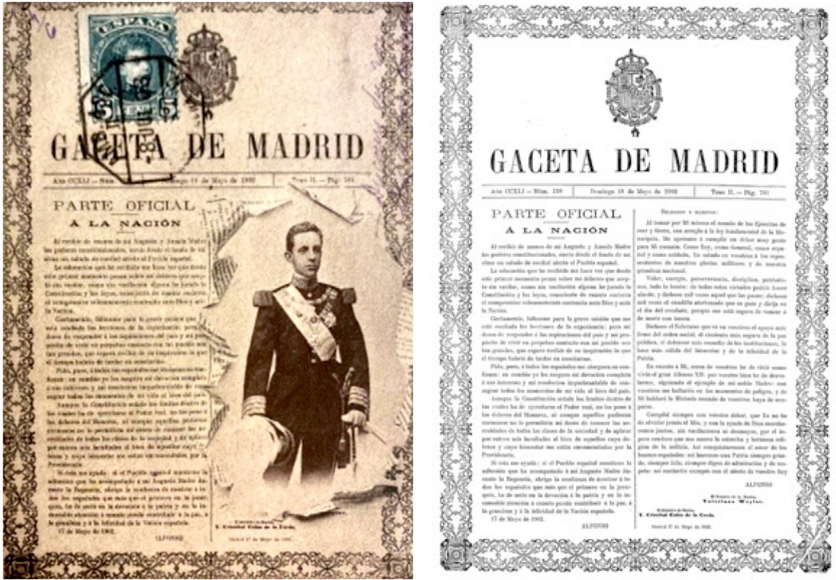En esa época se popularizó la edición de tarjetas postales, sobre todo por la casa Hauser y Menet, que en el año que inicia el reinado, tenía una producción mensual de 500.000 tarjetas, tanto por su uso como medio de comunicación por correo como por ser objeto de coleccionismo. En 1900, introdujo en su Serie General las seis primeras postales de la Monarquía, y en años sucesivos iba sacando al mercado nuevas postales sobre este tema, lo que indica que había una demanda importante de tarjetas de la Monarquía Española. En 1902, con motivo de la coronación de Alfonso XIII, editó dos series similares de 10 tarjetas con fotografías del rey en distintos años, desde 1886 (fecha de nacimiento) hasta 1902 (fecha de coronación). La diferencia entre ambas series, únicamente es que en una el texto “Colección conmemorativa al 17 de mayo de 1902” aparece en el anverso, y en la otra en el reverso.
