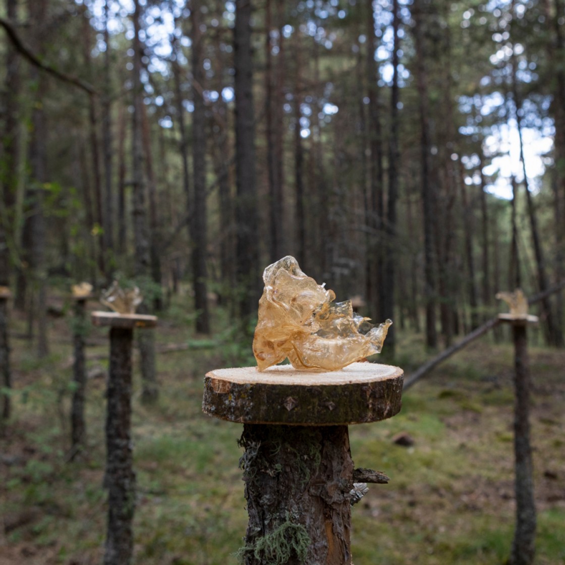 Imagen de una joya orgánica, creada a base de gelatina y elementos recogidos en el propio entorno