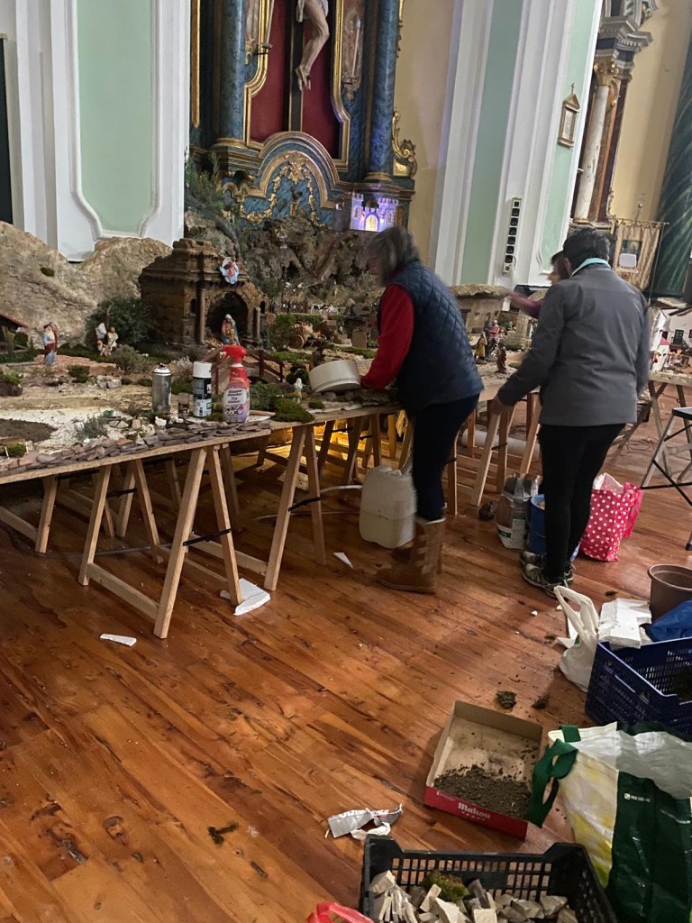 En Orihuela del Tremedal llevan todo el mes de noviembre con la instalación y lo hacen seis voluntarios en la Iglesia de San Millán. Lo más característico es la recreación de los edificios y la vegetación natural que decora todo el nacimiento. “Llevamos al menos 15 años montándolo ya más en serio, antes lo hacíamos más sencillo”, explica Cari Samper, quien reconoce que los vecinos lo esperan con entusiasmo. El horario de visitas es reducido porque la iglesia es muy fría y la gente aprovecha para visitarlo cuando va a misa, aunque los voluntarios ofrecen sus teléfonos para concertar citas. La voluntaria indica que el hecho de estar en la ruta anima a la gente a recorrerlos.
