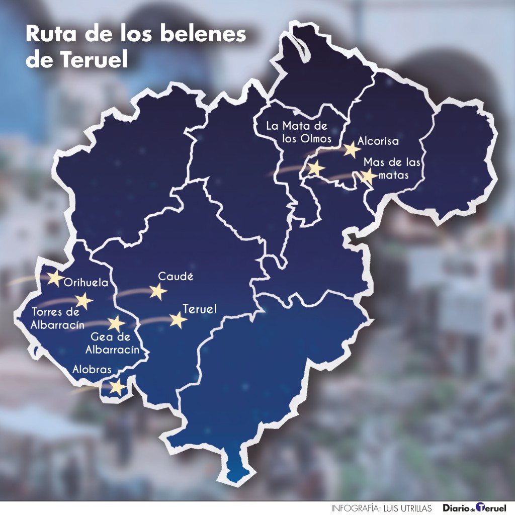 Los belenes son uno de los elementos más característicos de la Navidad y en la provincia de Teruel hay varios pueblos que se han sumado a una ruta para darlos a conocer y potenciar su visita. Las localidades de Alcorisa, Gea de Albarracín, Mas de las Matas, Alobras, Orihuela del Tremedal, Torres de Albarracín y La Mata de los Olmos son las que se han sumado a una ruta que incluye también el mítico Belén de San Pedro de la capital turolense y otro más en la pedanía de Caudé, que es la nueva incorporación de este año.