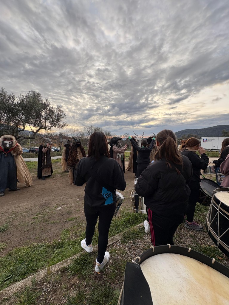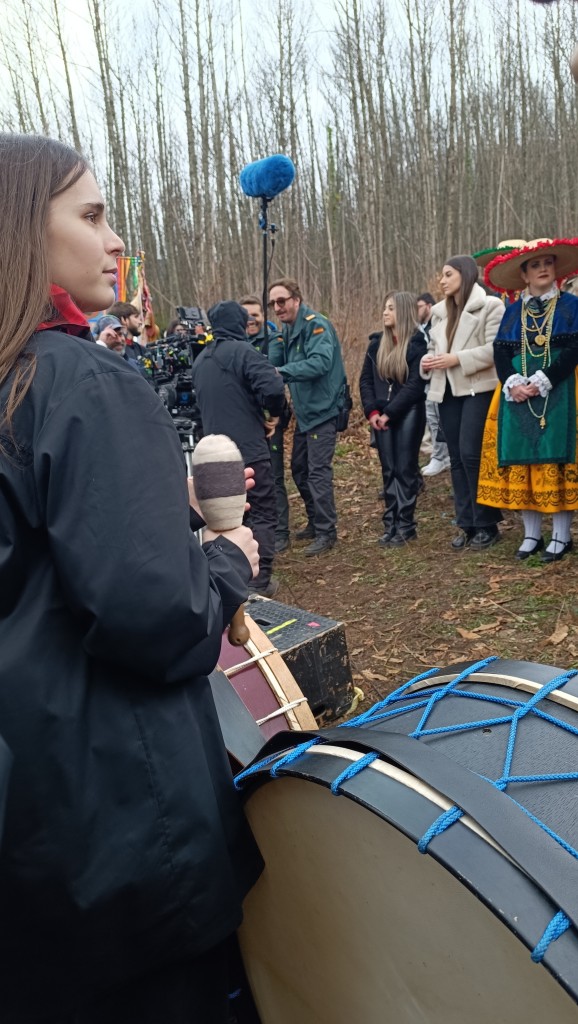 Tiempo atrás la productora se puso en contacto con la agrupación turolense porque habían escuchado sus grabaciones como las de otras tamborradas de toda España y les había gustado. Comenzaron entonces a trabajar de manera conjunta para conseguir ese toque que querían incluir en el capítulo para ambientar una celebración festiva. Y después de pruebas y ensayos dieron con el sonido deseado. Aunque fueron horas de rodaje de las que apenas se han seleccionado menos de dos minutos, la experiencia “vale la pena”, asegura Antón.