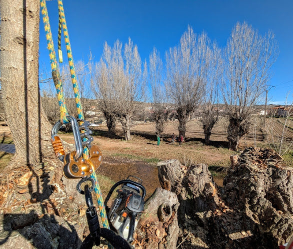 El tercer premio correspondió a la fotografía Escamonda que fue tomada en Torre los Negros y cuyo autor fue José Orduña. De este trabajo, los jurados destacaron “el punto de vista del autor” ante un paisaje que “se vislumbra desde la atalaya de un chopo que está siendo escamondado, en la que destacan el arnés y la motosierra, instrumentos indispensables del motosierrista, con una iluminación y un enfoque muy precisos. El enmarque de la rama enhiesta y las que ya están podadas, recuerdan al marco de una ventana desde la que se aprecian los chopos del fondo”. Además, señalan que las personas que se aprecian en un segundo plano “ayudan a contextualizar el tamaño de esos chopos que también necesitan una poda”.
