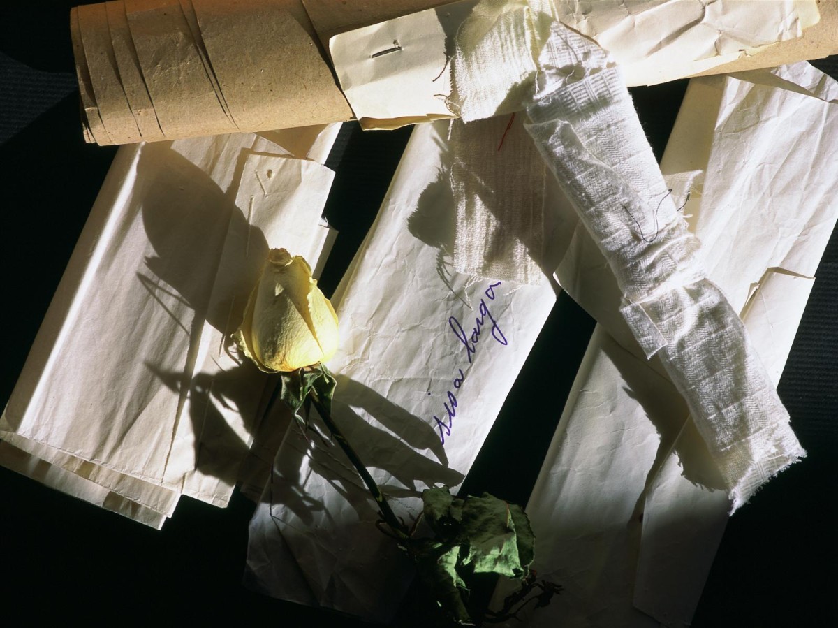 La otra línea de trabajo en la que se articula la exposición se refiere a la serie fotográfica Retales. Por un lado remite a la visión fragmentada del mundo que necesariamente tiene el ser humano, y por otro, de forma más explícita, a los pedazos de tejido que su madre, dedicada a las labores de costura, guardaba cuidadosamente. Santiago Martínez denomina a estas imágenes “fotografías del silencio”, obtenidas gracias al absoluto dominio del control de la luz y el claroscuro que Ángeles Pérez imprime a sus imágenes, técnicamente impolutas.