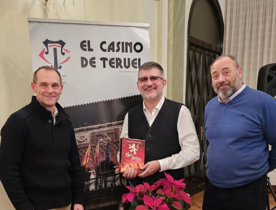 El escritor turolense Sebastián Roa (izda.) participó en un encuentro con sus lectores que tuvo lugar el miércoles en el Círculo Recreativo Turolense, en torno a la novela Sin alma (Harper&Collins, 2022), sobre el caballero franco Simón de Monfort. En la novela el turolense explora los primeros años de Monfort, muy poco conocidos para la historiografía tradicional, y contribuye a deshacer el mito de la leyenda negra que gira en torno a él, que exagera su carácter sanguinario, durante la etapa en la que dirigió la Cruzada Albigense y acabó en Muret con las tropas del Pedro de Aragón, y con la vida del propio rey.