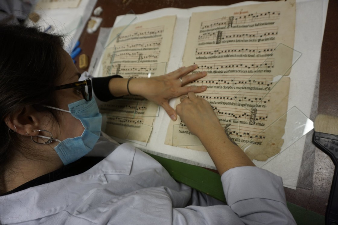 El curso de restauración trabaja sobre un pasionario, una serie didáctica y un cartelUn pasionario con partituras del siglo XVI del Archivo Musical de la Catedral de Albarracín, una serie de carteles didácticos de Josph Achile Comte del siglo XIX, que pertenecen a la colección de materiales del IES Vega del Turia de Teruel, y un cartel de toros de gran formato de 1942 han sido los materiales sobre los que han trabajado los diez alumnos del Curso de Conservación y Restauración de Documento Gráfico que organiza anualmente la Fundación Santa María de Albarracín, y se clausurará la presente edición a lo largo de esta semana.