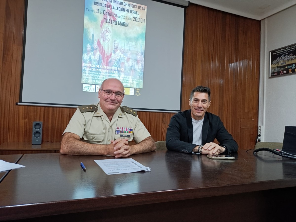 Actuarán 30 músicos profesionales de la Unidad de Música de la Brigada Rey Alfonso XIII de la Legión, con sede en la base Álvarez de Sotomayor en Viator (Almería), dirigidos por el teniente Javier Vicente Vallejo Climent. Sobre las tablas del Marín sonarán marchas militares, “algunas de ellas las más identificables del repertorio de la Legión”, según Salvador Medrano, quien sin embargo matiza que “será un concierto variado”, ya que junto a las marchas militares también podrán escucharse “pasodobles, algunos temas con aires caribeños y también de Broadway”.