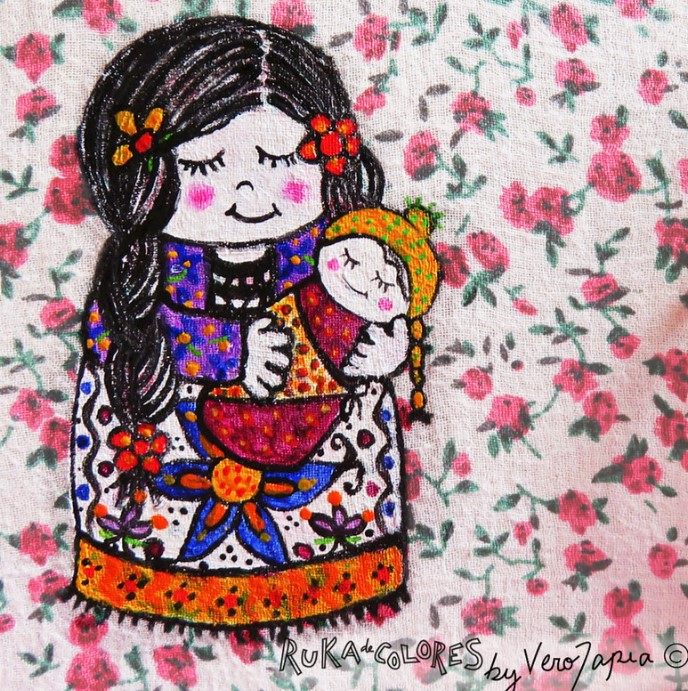 Vero Tapia también expone piezas extraídas de Rukadecolores, que no es tanto un pseudónimo como el nombre de un proyecto personal en el que la creadora trabaja constantemente. “Ruka en mapuche, la lengua que se habla en el sur de Chile y Argentina, significa hogar, pero no solo como casa o espacio, sino como concepto global y espiritual”, explica Tapia. “De algún modo trato de ir construyendo poco a poco a base de ilustraciones ese hogar colorido que me envuelve, en un proyecto que comenzó hace mucho tiempo y que está inacabado”.