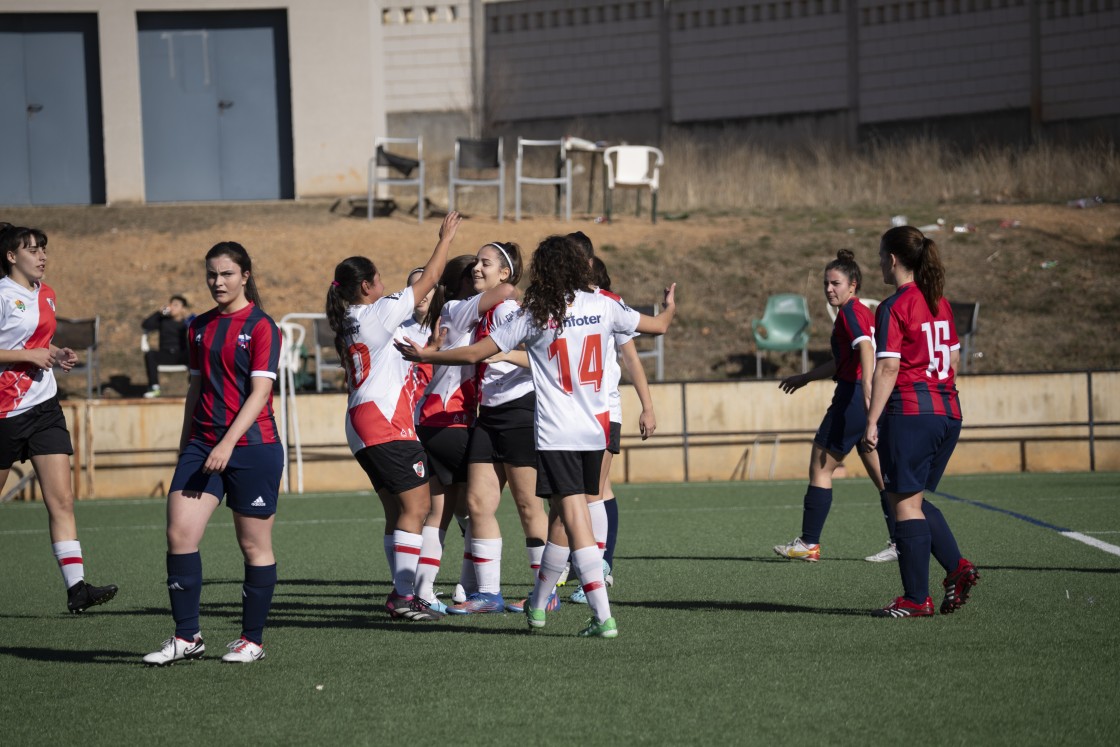 Apretaron las franjirrojas desde el principio la salida de balón de las visitantes, robando balones muy arriba y generando constante peligro. Tras varias internadas por la banda derecha a través de Arancha Maldonado e Irina Lorente, llegó el minuto 12 de partido con un córner a favor de las locales. Elena Orriols ya había botado un par de saques de esquina con anterioridad que a punto estuvieron de acabar en gol, pero a la tercera fue la vencida. La propia Orriols puso un balón medido a la cabeza de Paula Gorbe que abrió el marcador, y su cuenta personal de la temporada.