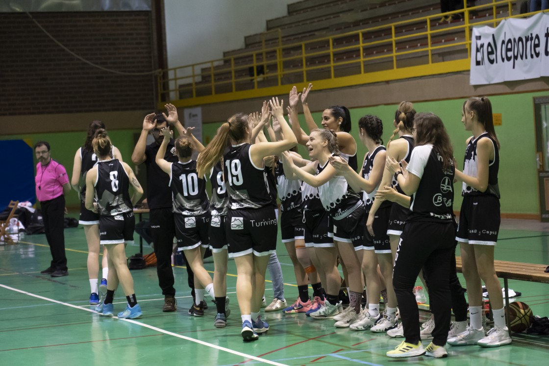 Las jugadoras del Teruel Basket Mudéjar se saludan antes de un partido. A. G.