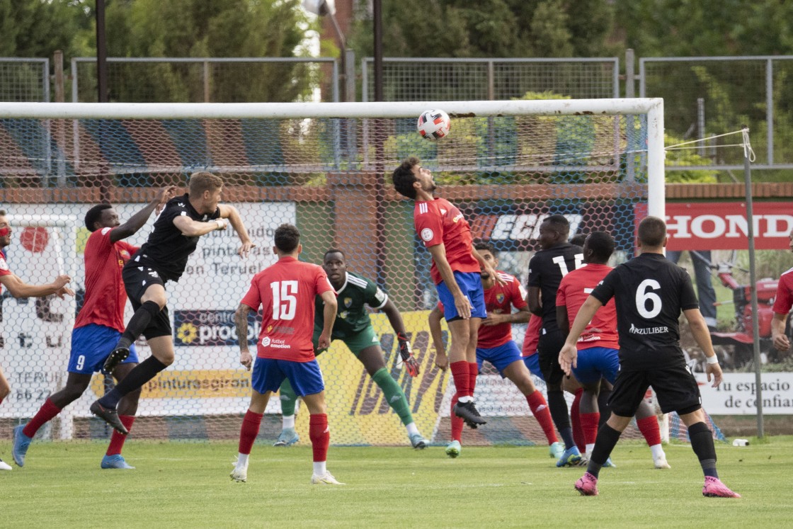 Instante del partido disputado el pasado sábado entre el CD Teruel y el Castellón en Pinilla que terminó con empate (1-1). Bykofoto/Archivo