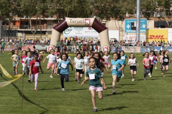Alrededor de las 16:00 horas de la tarde daba comienzo el evento, por lo que muchos comenzaron a acercarse al estadio unos minutos antes de que el reloj diese en punto para empezar a llenar de color el estadio de Pinilla. Con todo preparado por parte del Club La Salle Caja Rural de Teruel y con los más rezagados dispuestos, dio comienzo el cross. Las primeras en tomar partida y probar el césped de Pinilla fueron las niñas de 2018, en su caso, al tratarse de las más pequeñas, únicamente dieron una vuelta al circuito que la organización tenía preparado. Lo mismo ocurrió con los niños de 2018 y las niñas y los niños de 2017. De esta manera, los más pequeños fueron los que inauguraron el Cross Promesicas. Este sería el guion establecido, ya que las carreras irían de las categorías de los más pequeños a los más grandes.