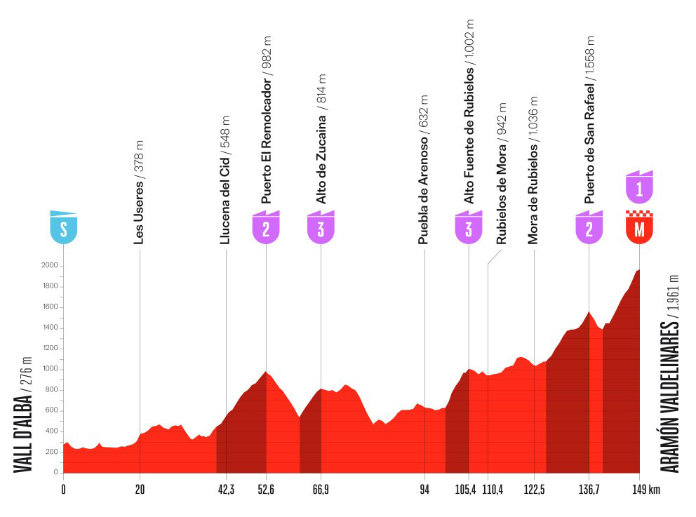 Después de que Javalambre y su imponente ascensión al Pico del Buitre acaparara los focos estos últimos años siempre que La Vuelta decidía volver a Teruel, ahora le toca el turno a Valdelinares, que tratará de estar a la altura y proponer un desafío tal cual se le presupone y que no acogía La Vuelta desde la fiesta colombiana de 2014, cuando Winner Anacona se llevó la victoria de etapa y Nairo Quintana se convirtió en nuevo líder de la carrera.