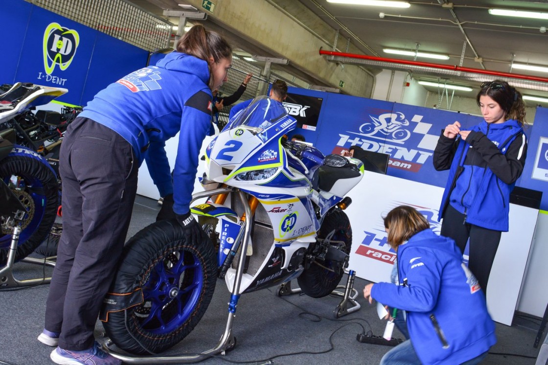 Tres mecánicas ponen a punto una de las motos que participarán en las pruebas del fin de semana. Motorland