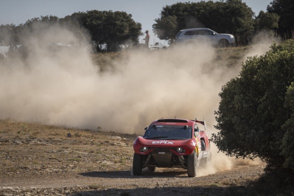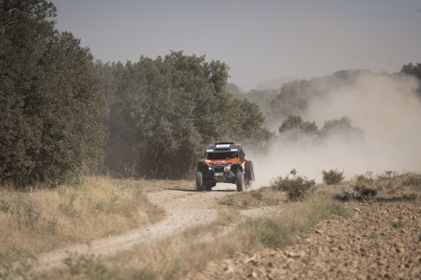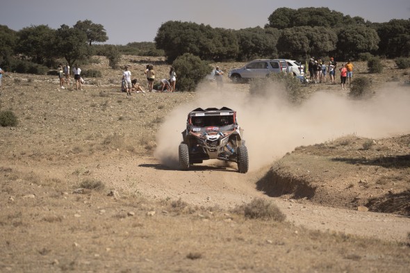 En coches, el piloto catarí de Overdrive había sido el más rápido en el tramo Monreal del Campo-Santa Eulalia, llegando a distanciar a Loeb en algo más de un minuto en la general.